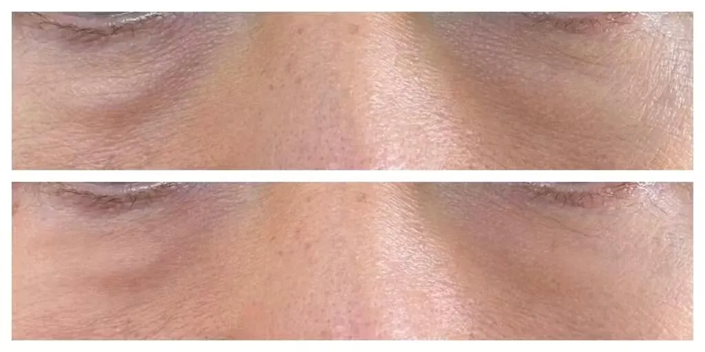 Let me introduce "Wrinkle Senior" (Pic 1). It’s my oldest wrinkle, and unfortunately, it‘s hereditary. But look at it after four weeks of use (Pic 2)!